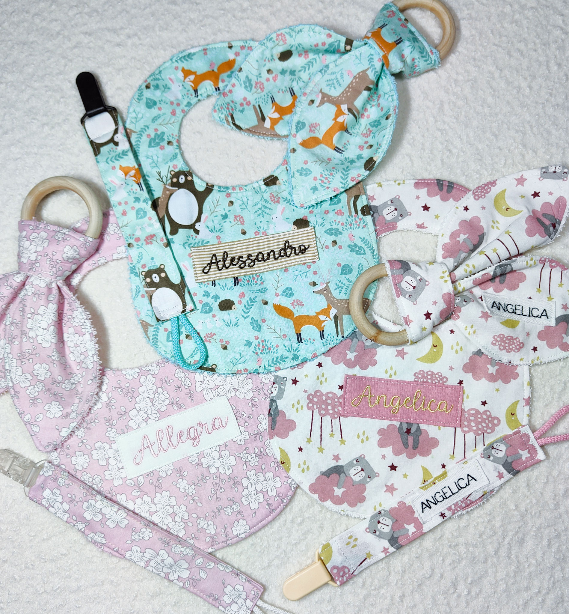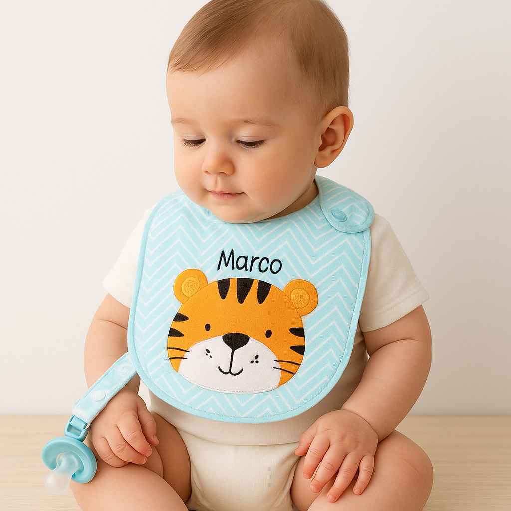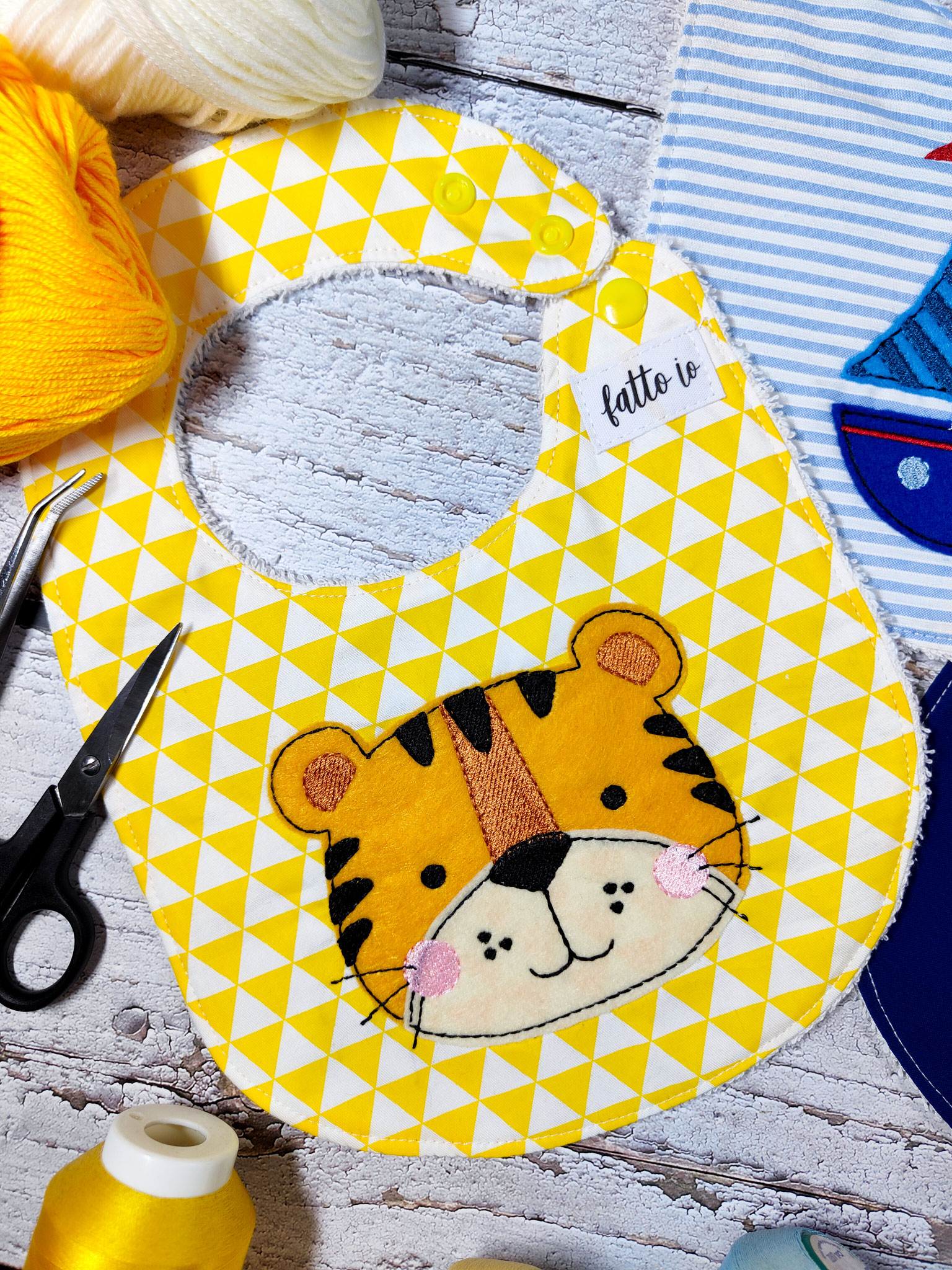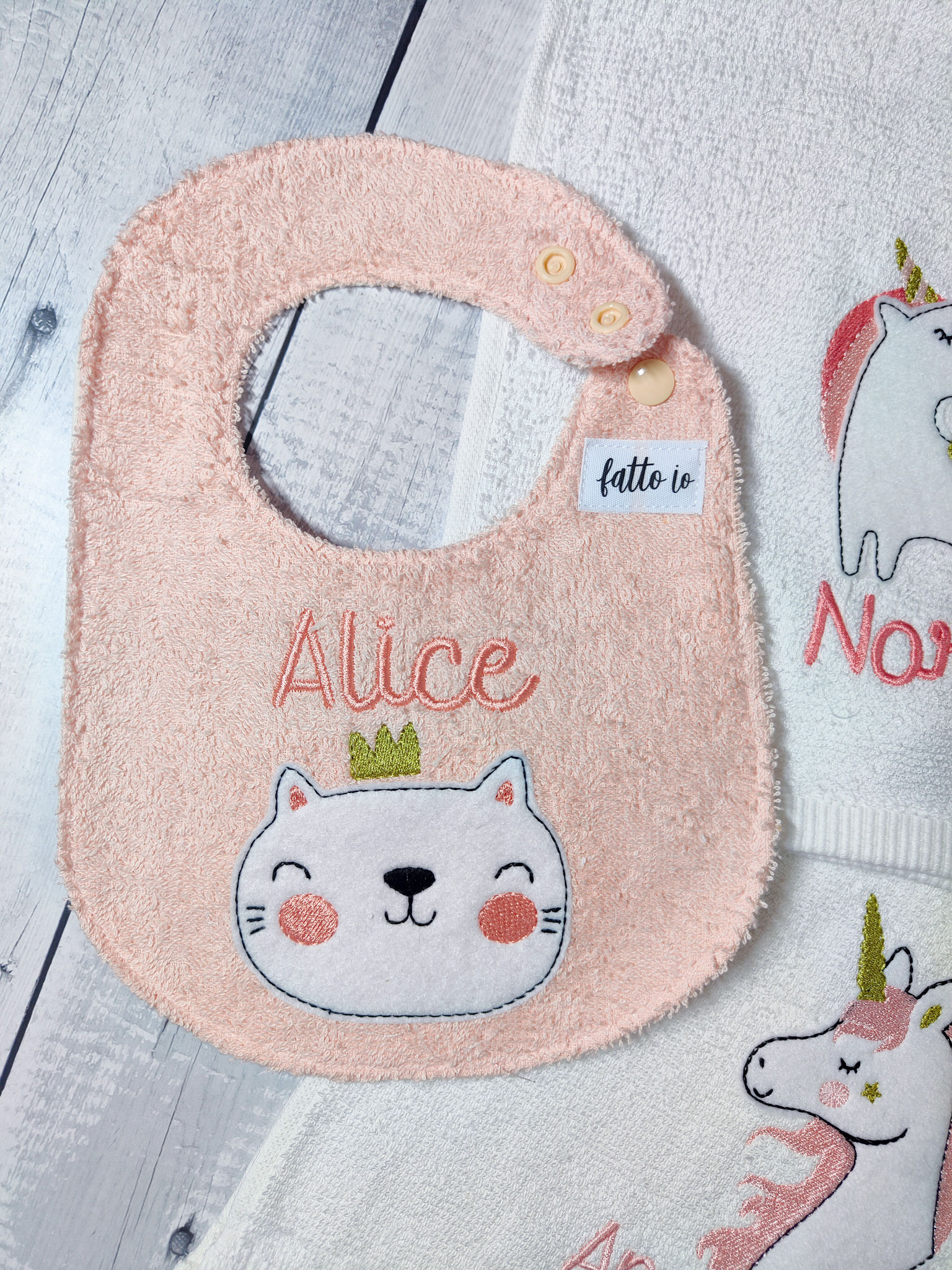 Misura: 26 x 20 cm, ideale fin dai primi mesi fino ai 18/24 mesi.Bavaglia in Spugna di cotone (colore a scelta) e tantissimi disegni ricamati tra cui scegliere.