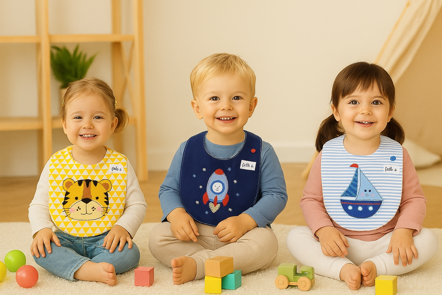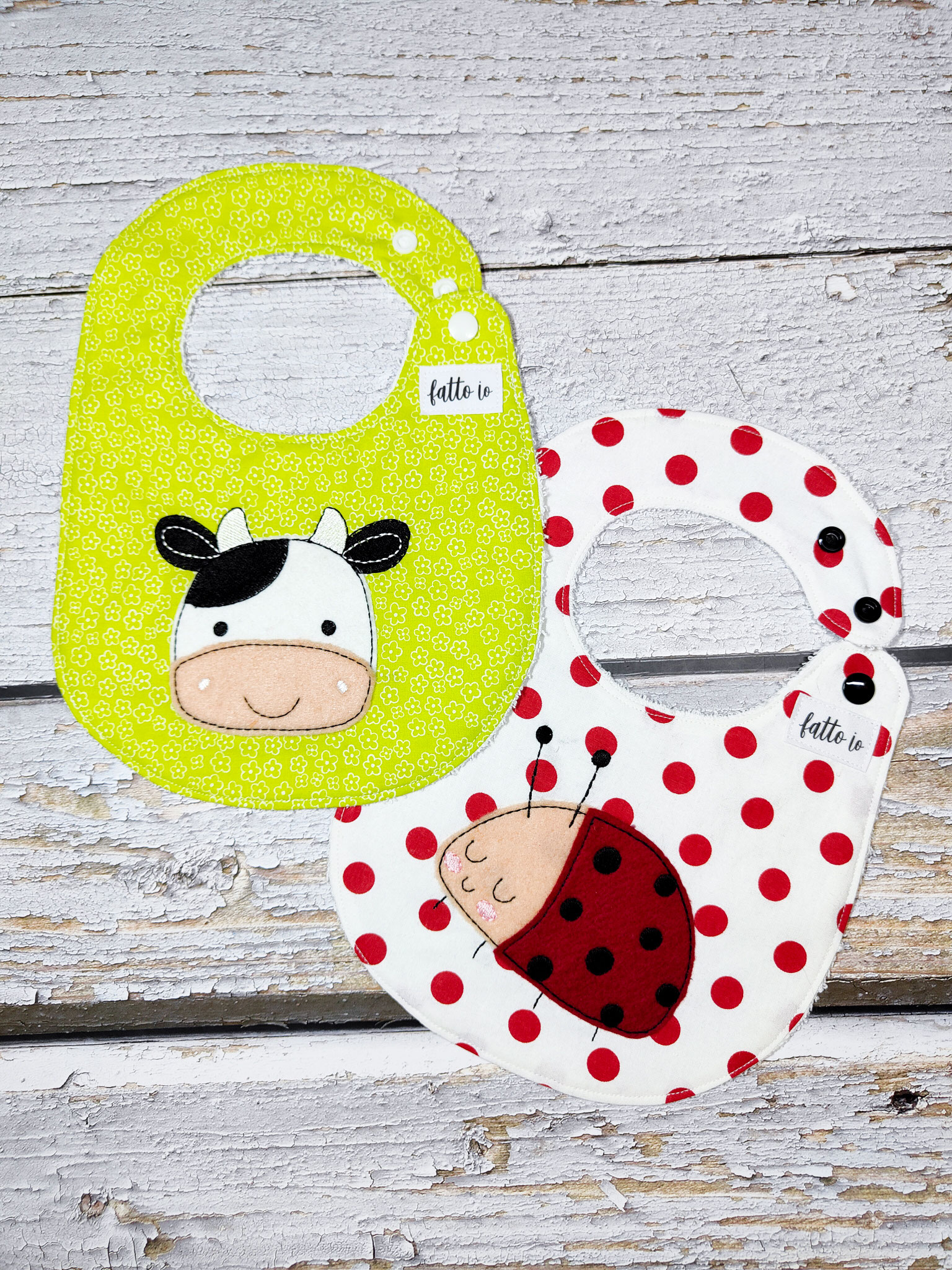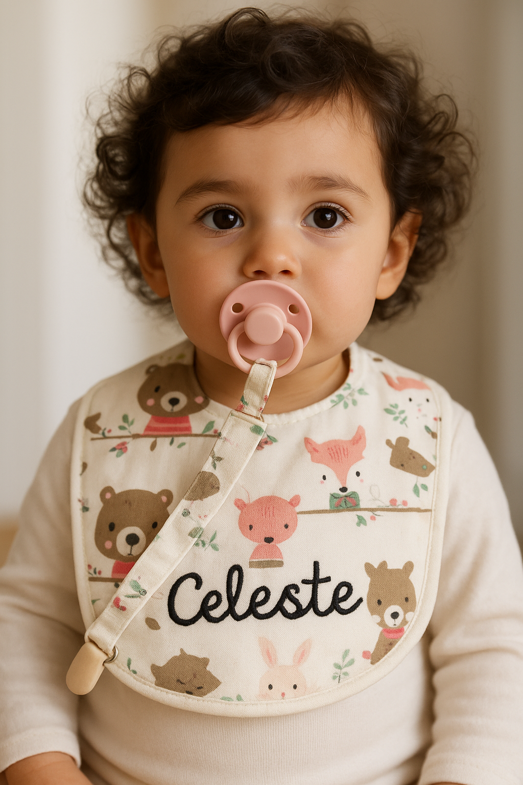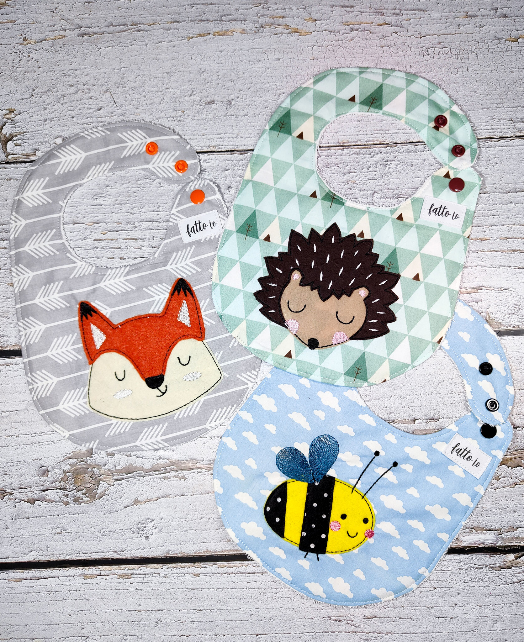 Misura: 26 x 20 cm, ideale fin dai primi mesi fino ai 18/24 mesi.Bavaglia in Spugna di cotone (colore a scelta) e tantissimi disegni ricamati tra cui scegliere.