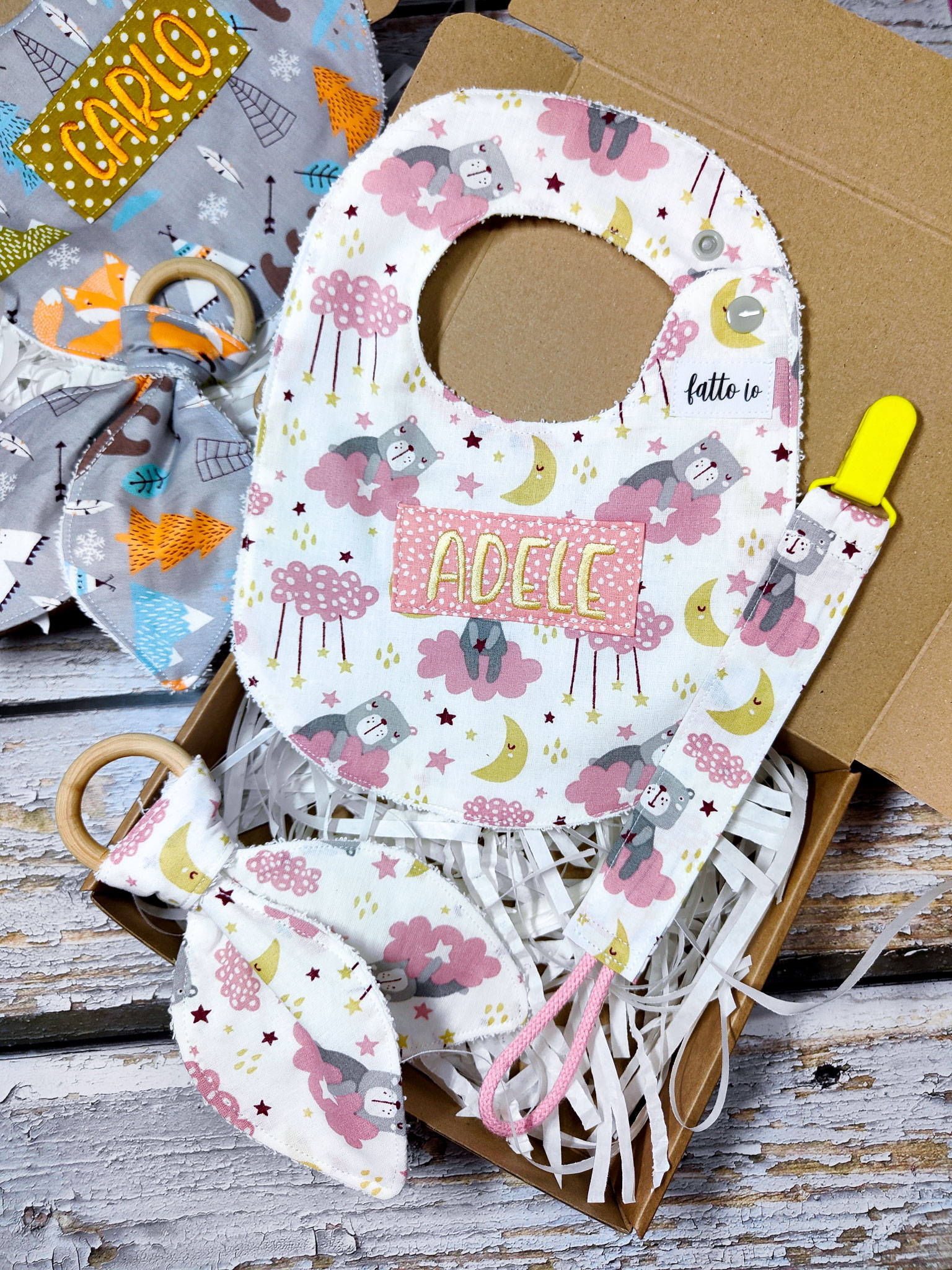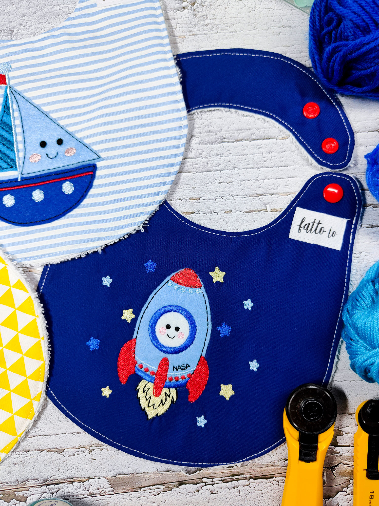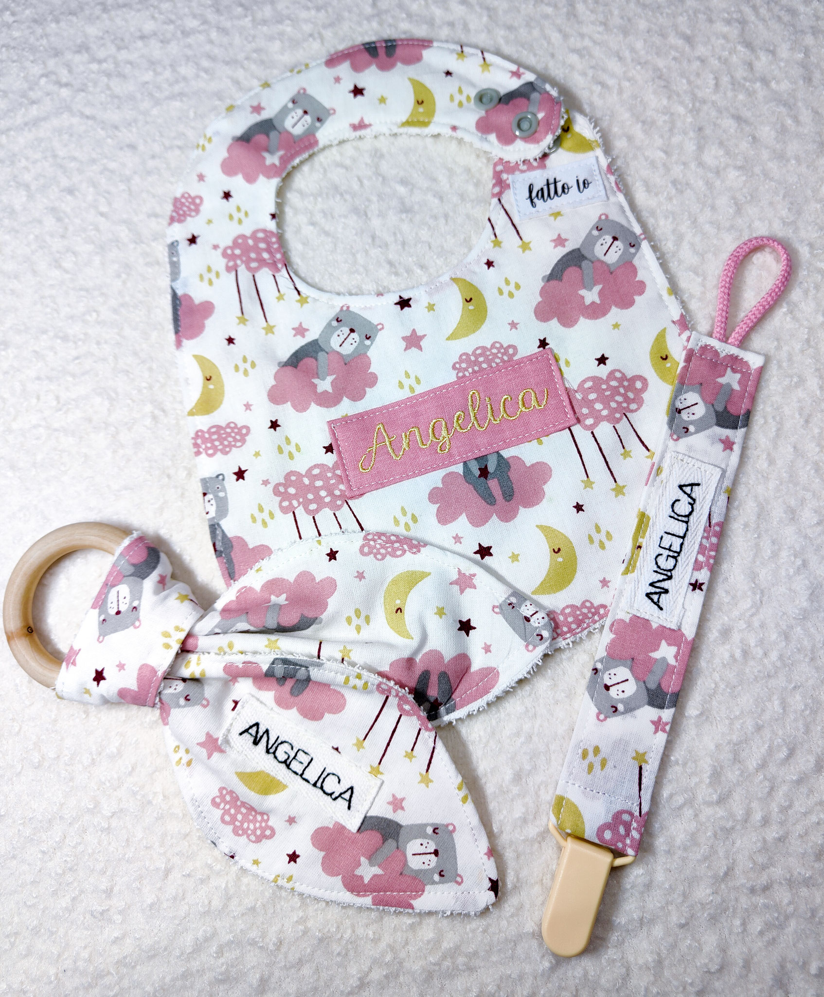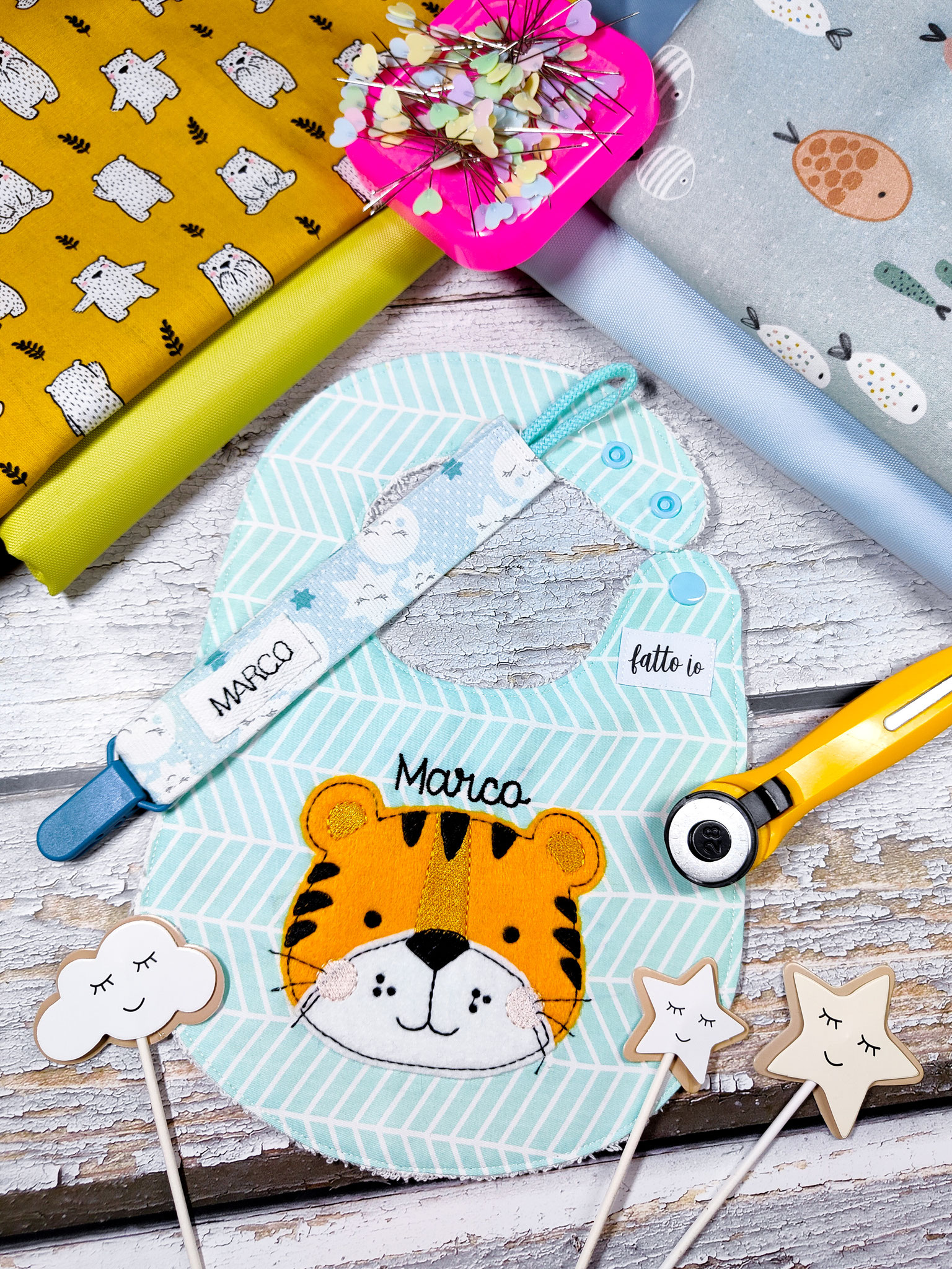 Misura: 26 x 20 cm, ideale fin dai primi mesi fino ai 18/24 mesi.Bavaglia in Spugna di cotone (colore a scelta) e tantissimi disegni ricamati tra cui scegliere.
