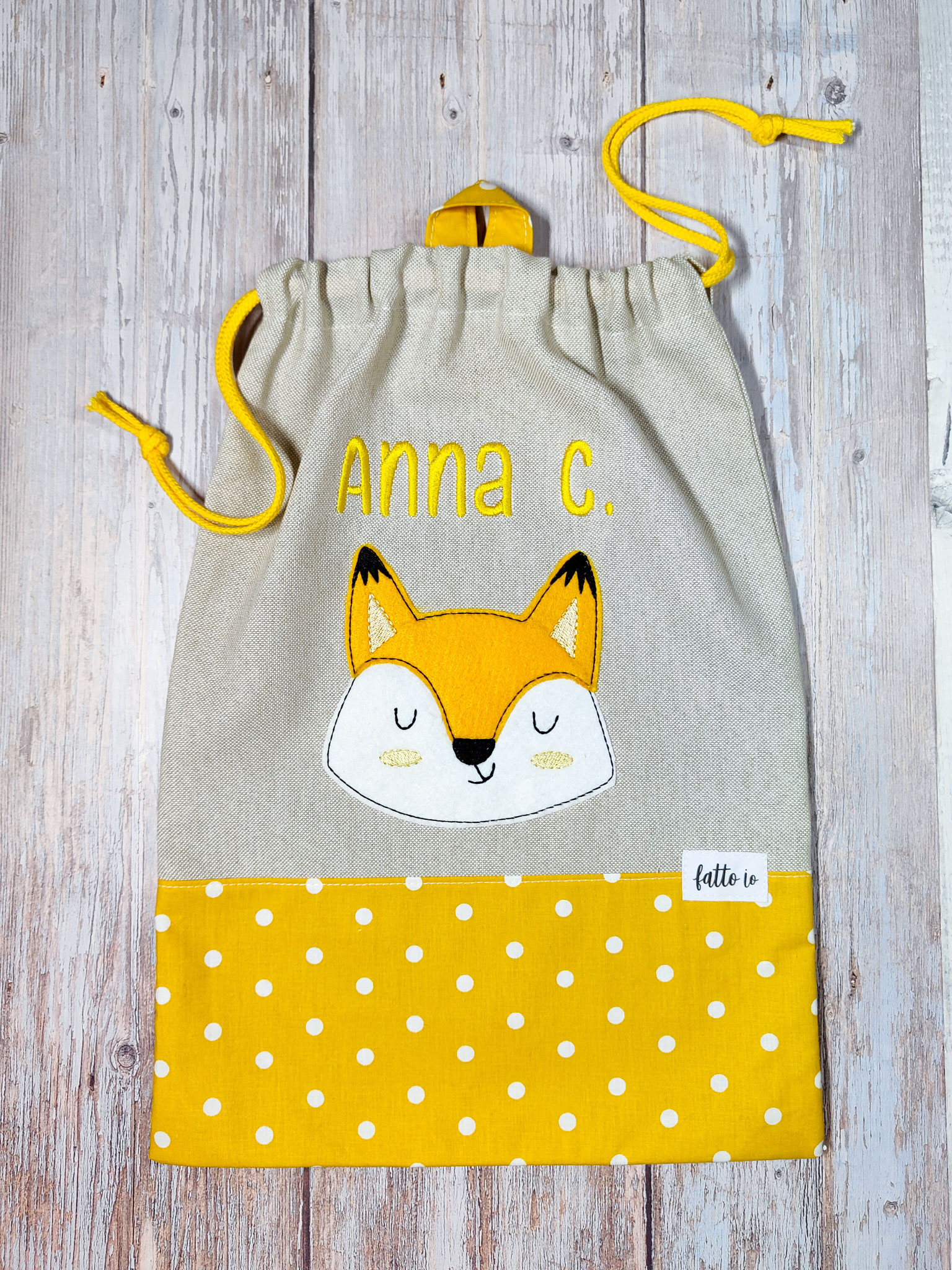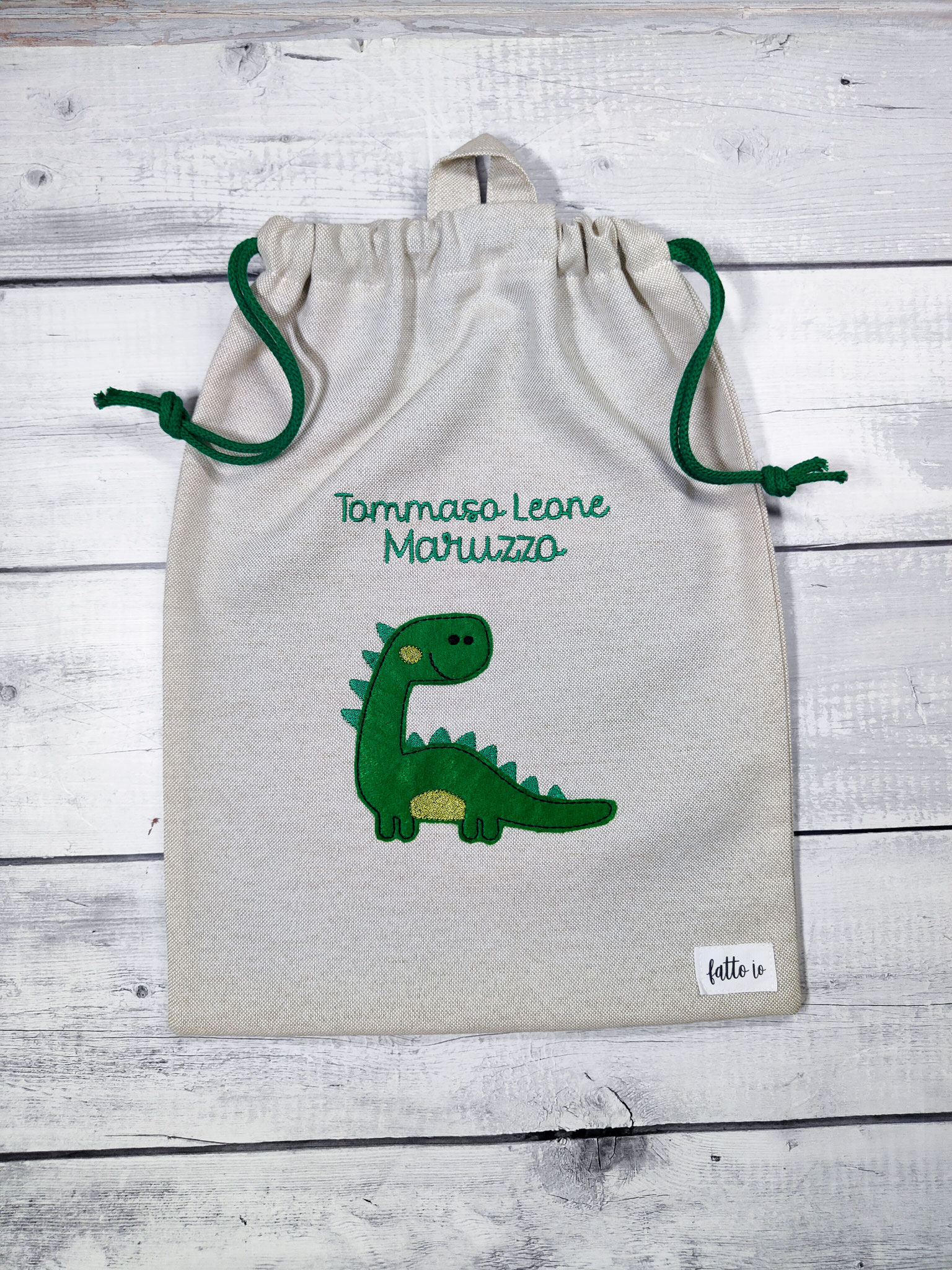 Nome Ricamato (compreso nel prezzo) direttamente sul Tessuto Canapa dello Zaino.