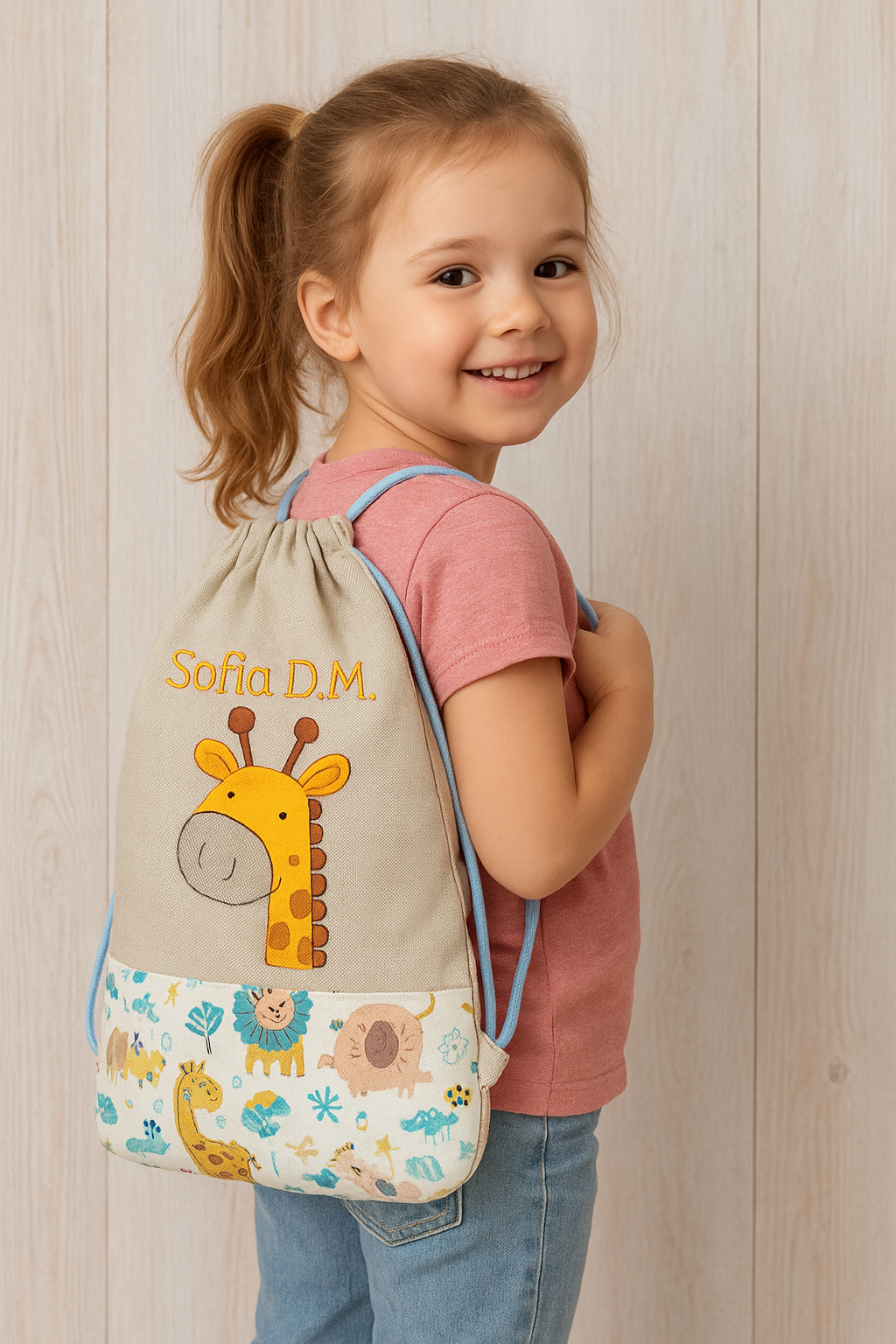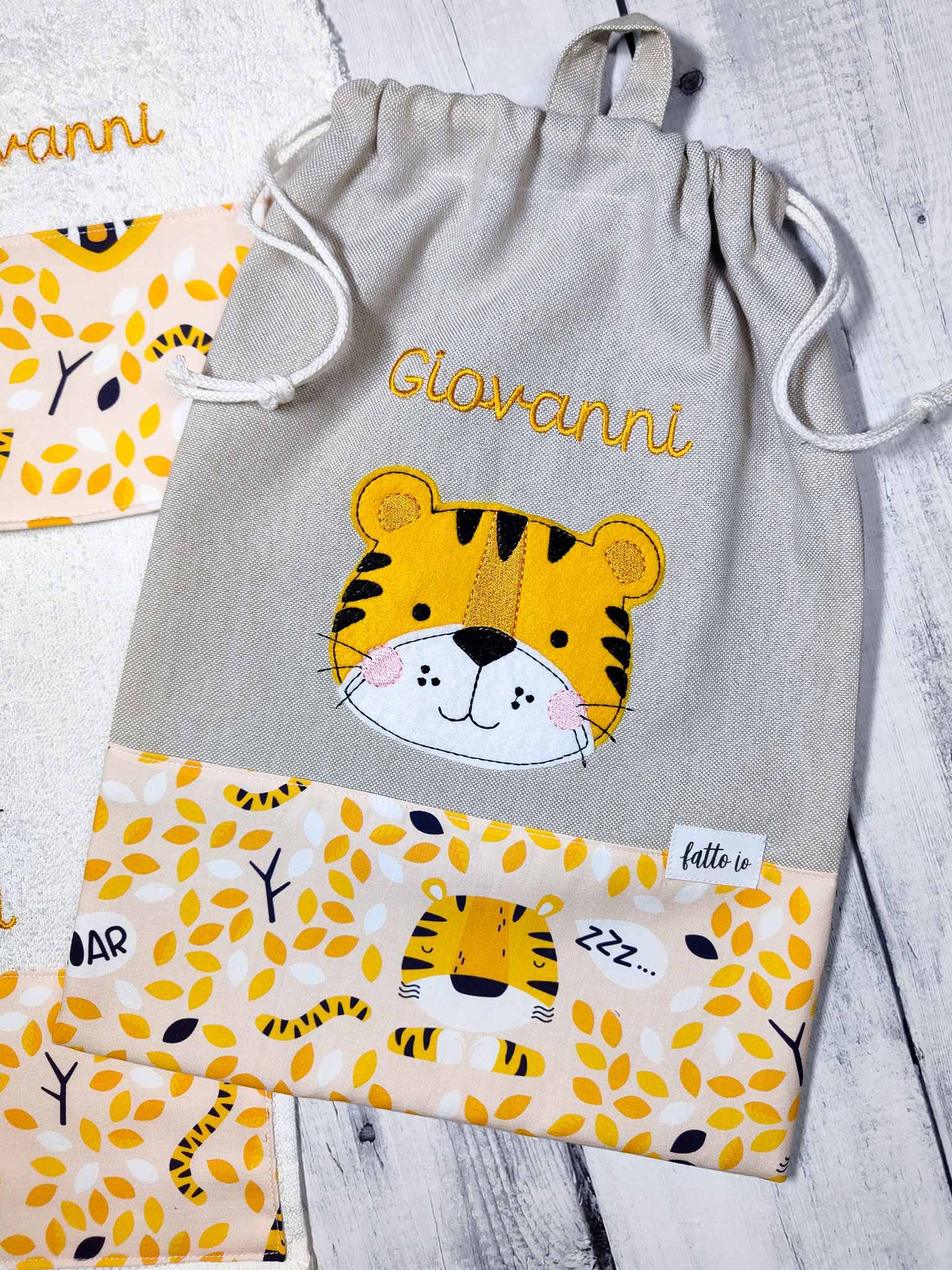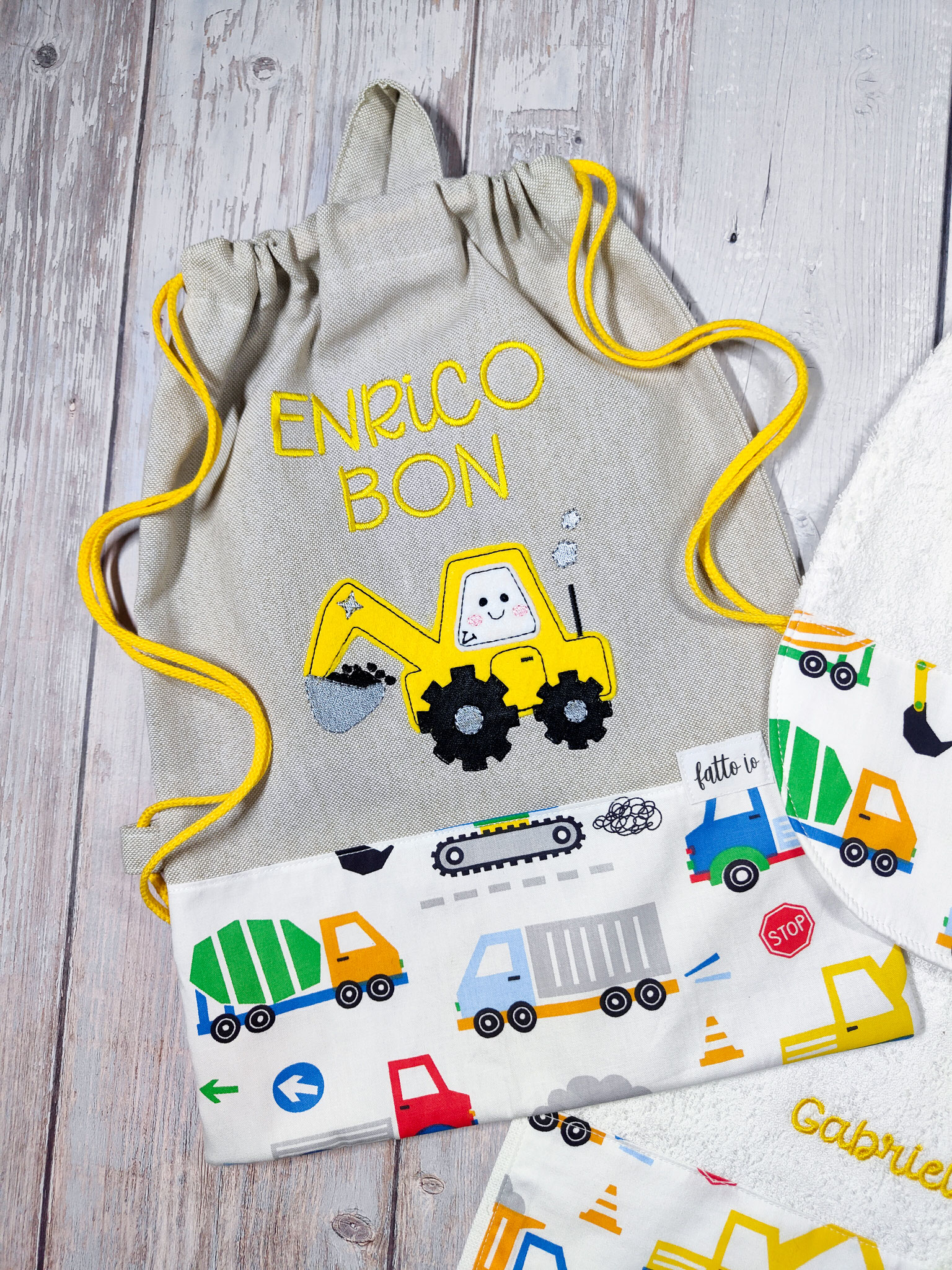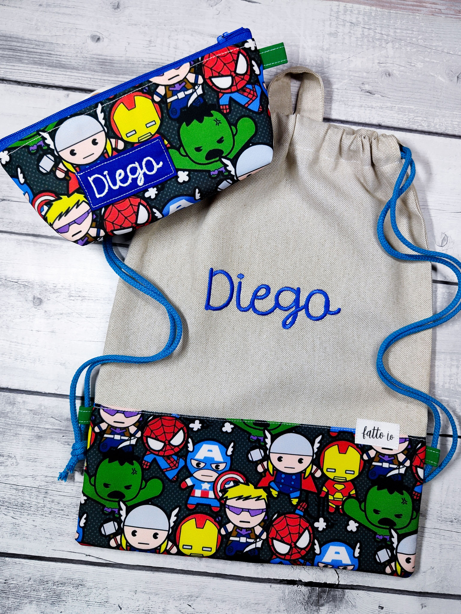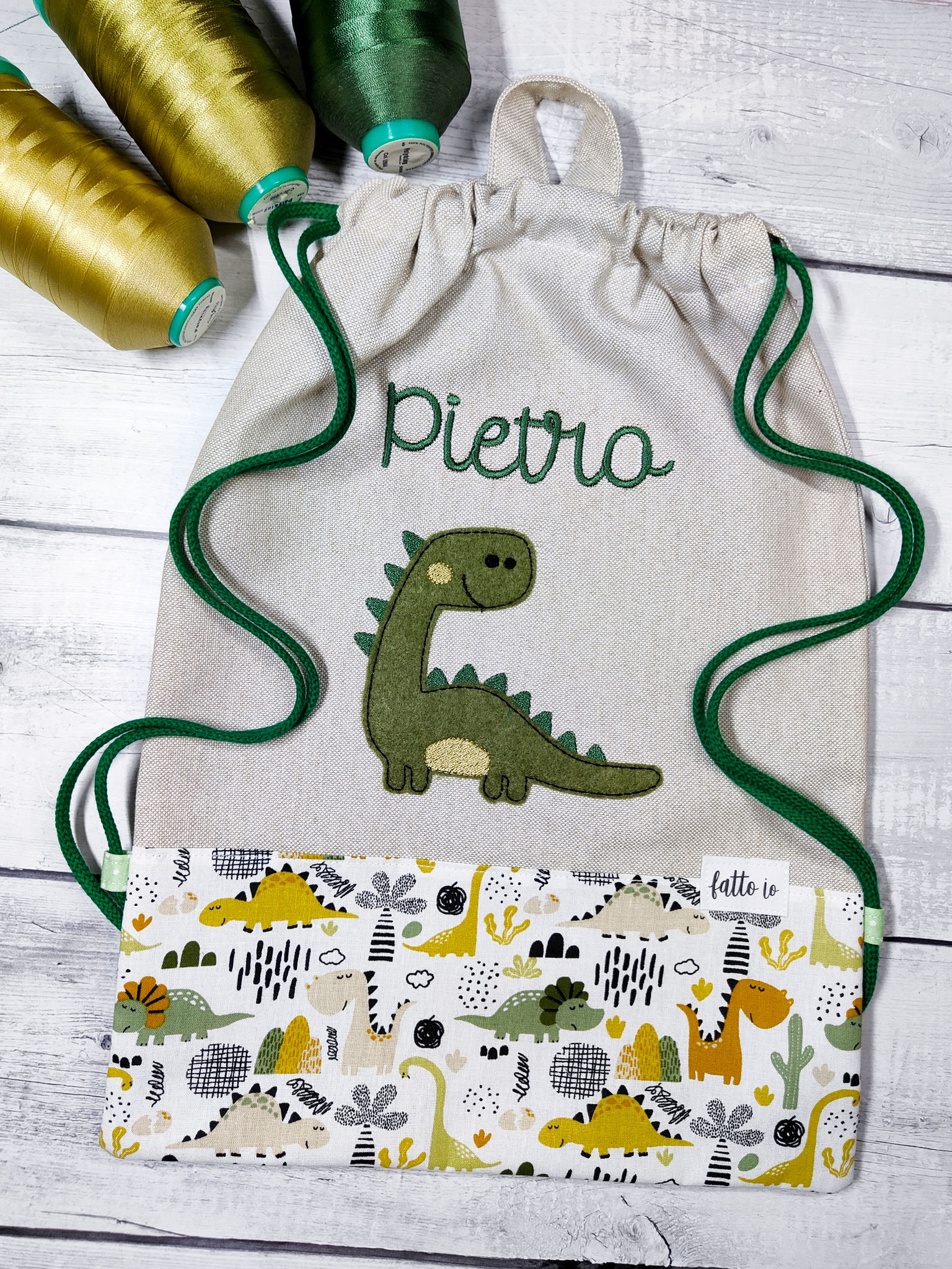 Nome Ricamato (compreso nel prezzo) direttamente sul Tessuto Canapa dello Zaino.