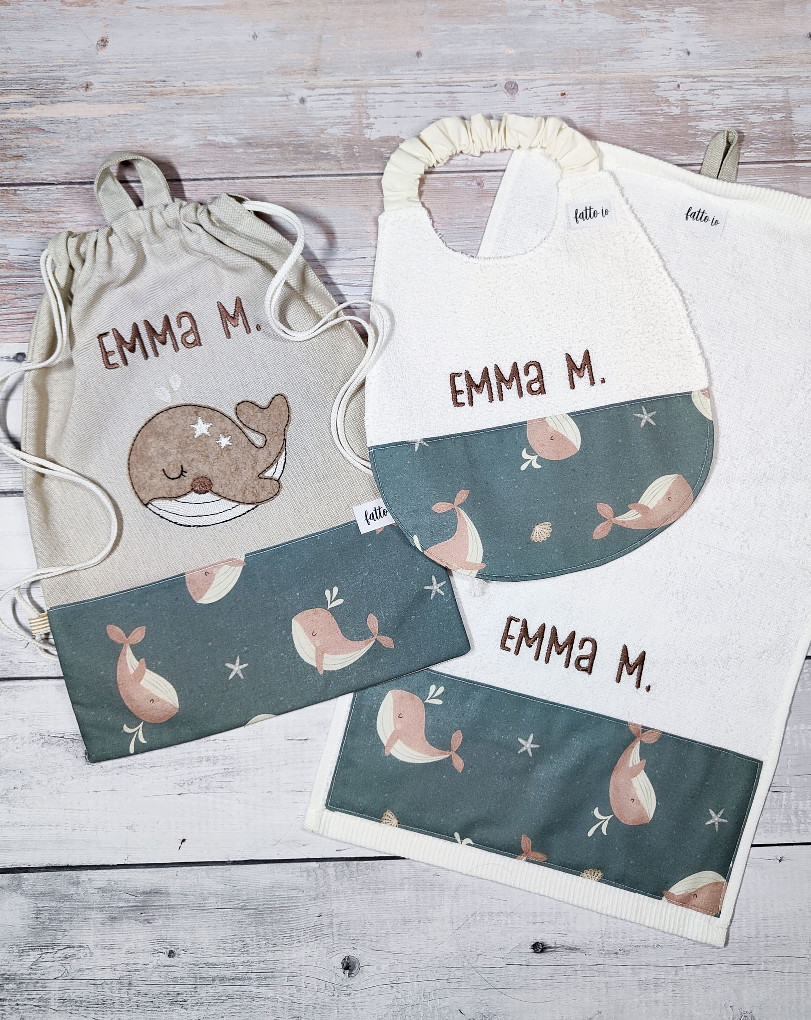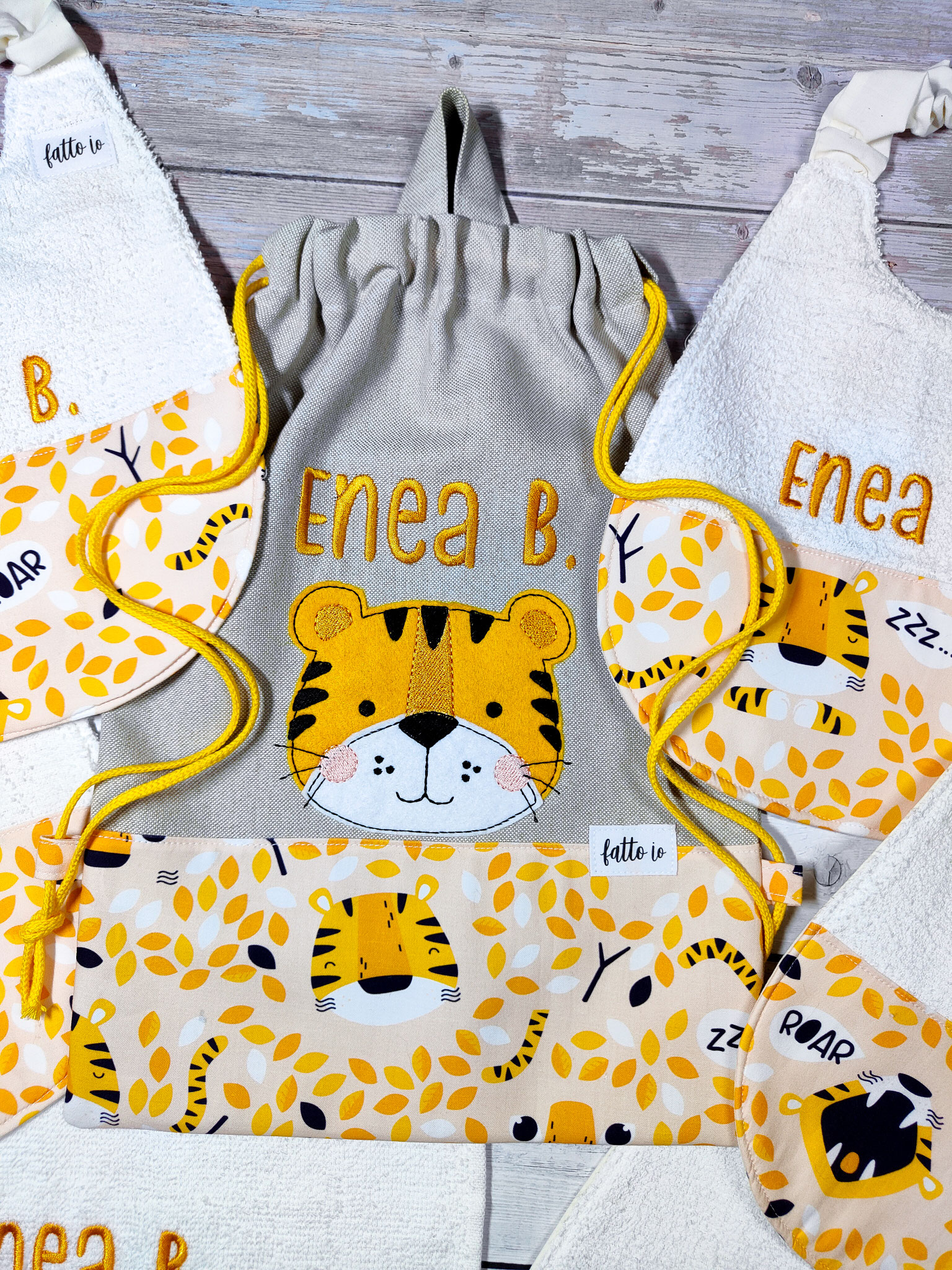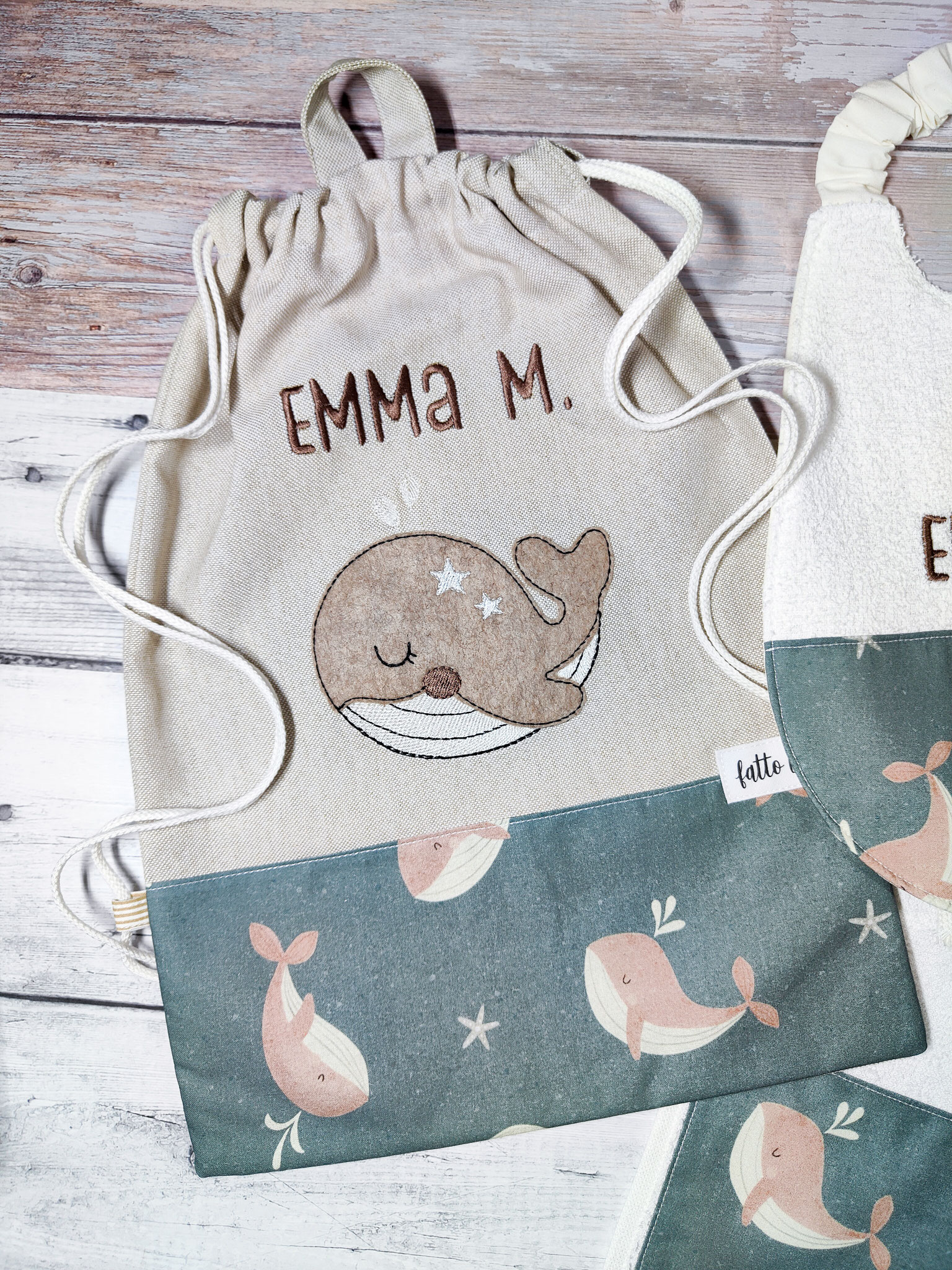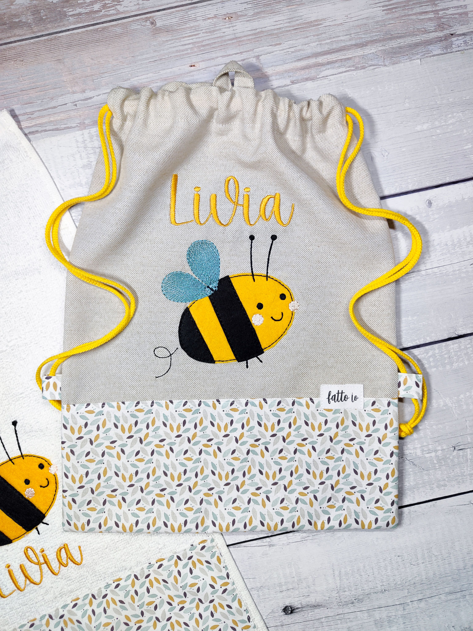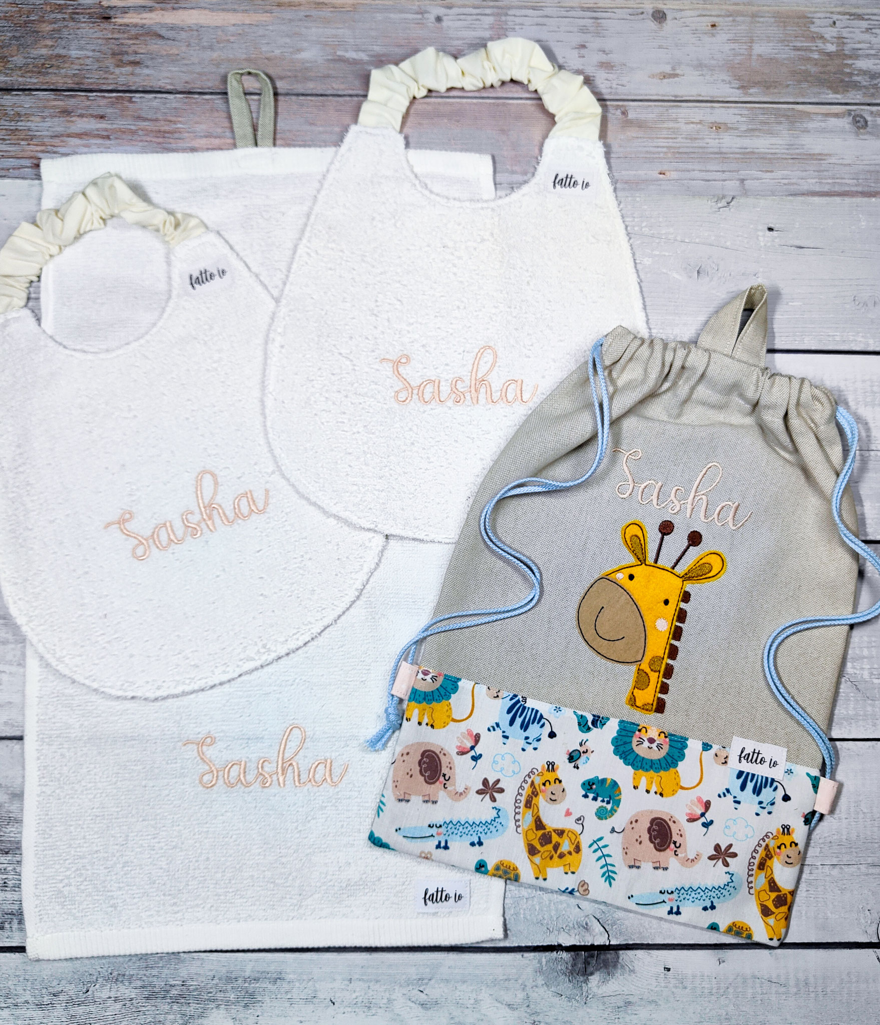 Nome Ricamato (compreso nel prezzo) direttamente sul Tessuto Canapa dello Zaino.