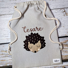 Zaino a sacca in Tessuto di cotone color canapa grezza.