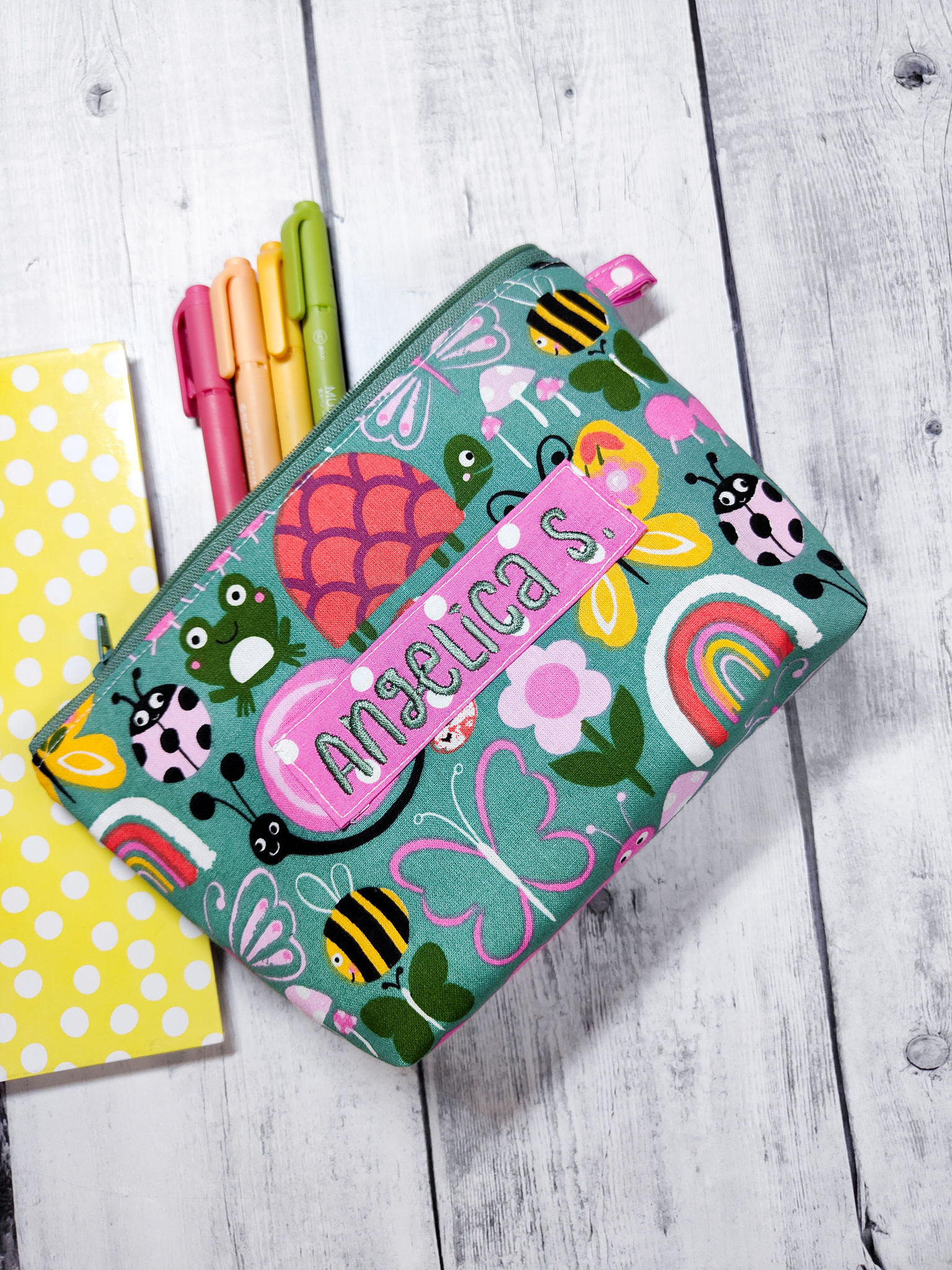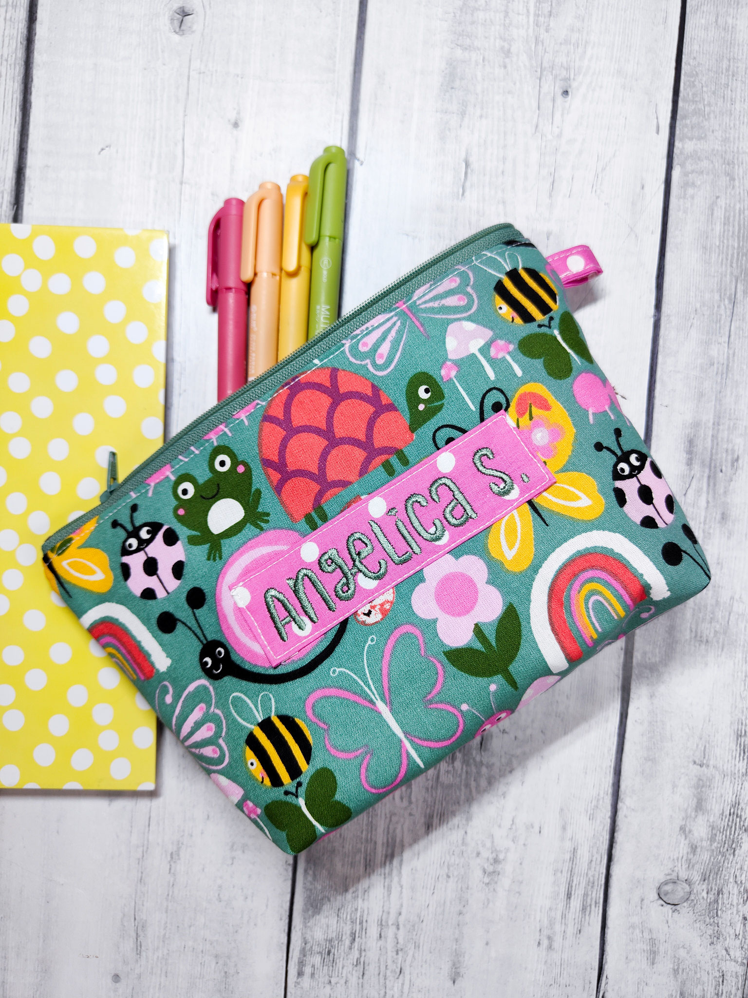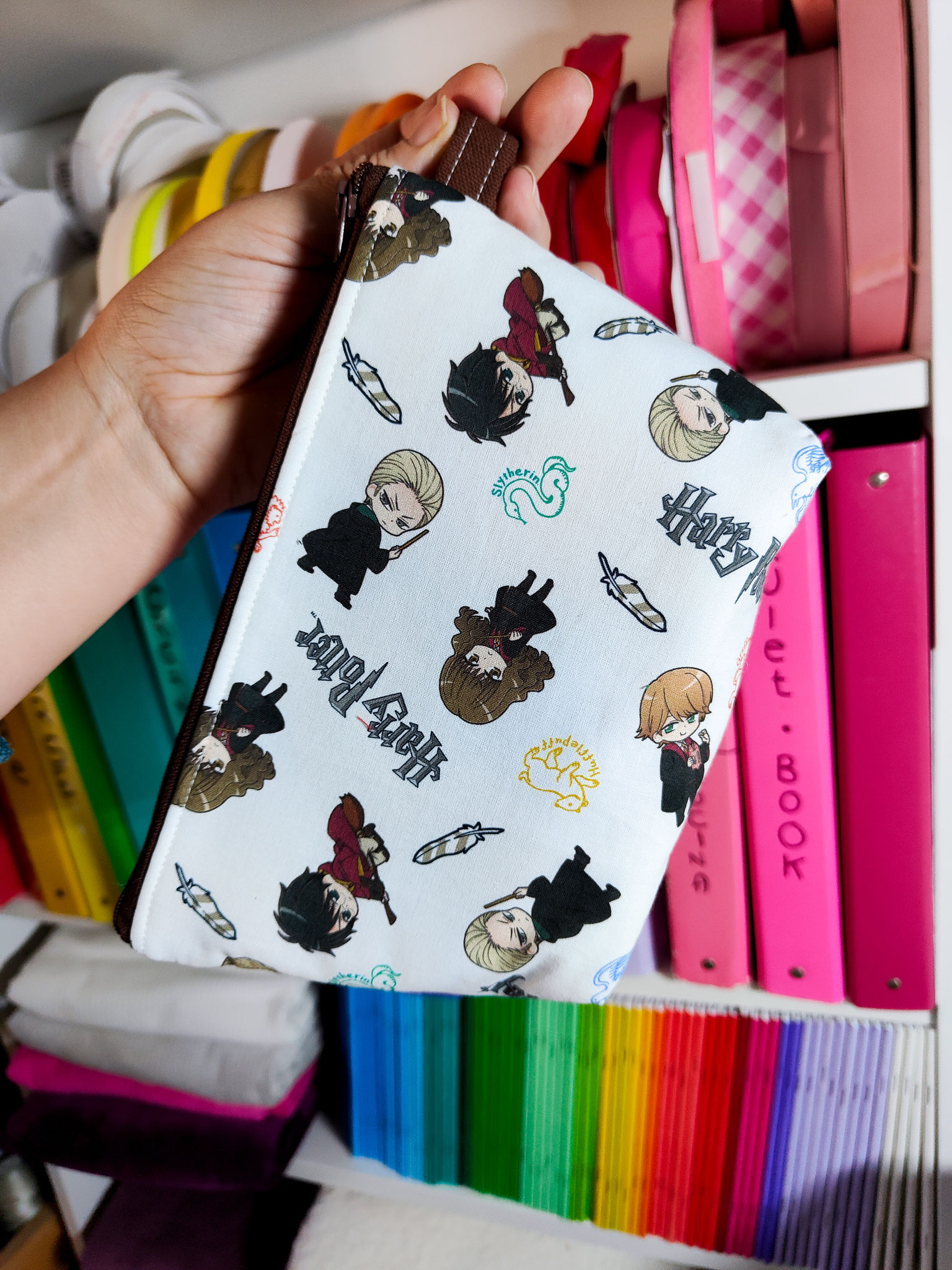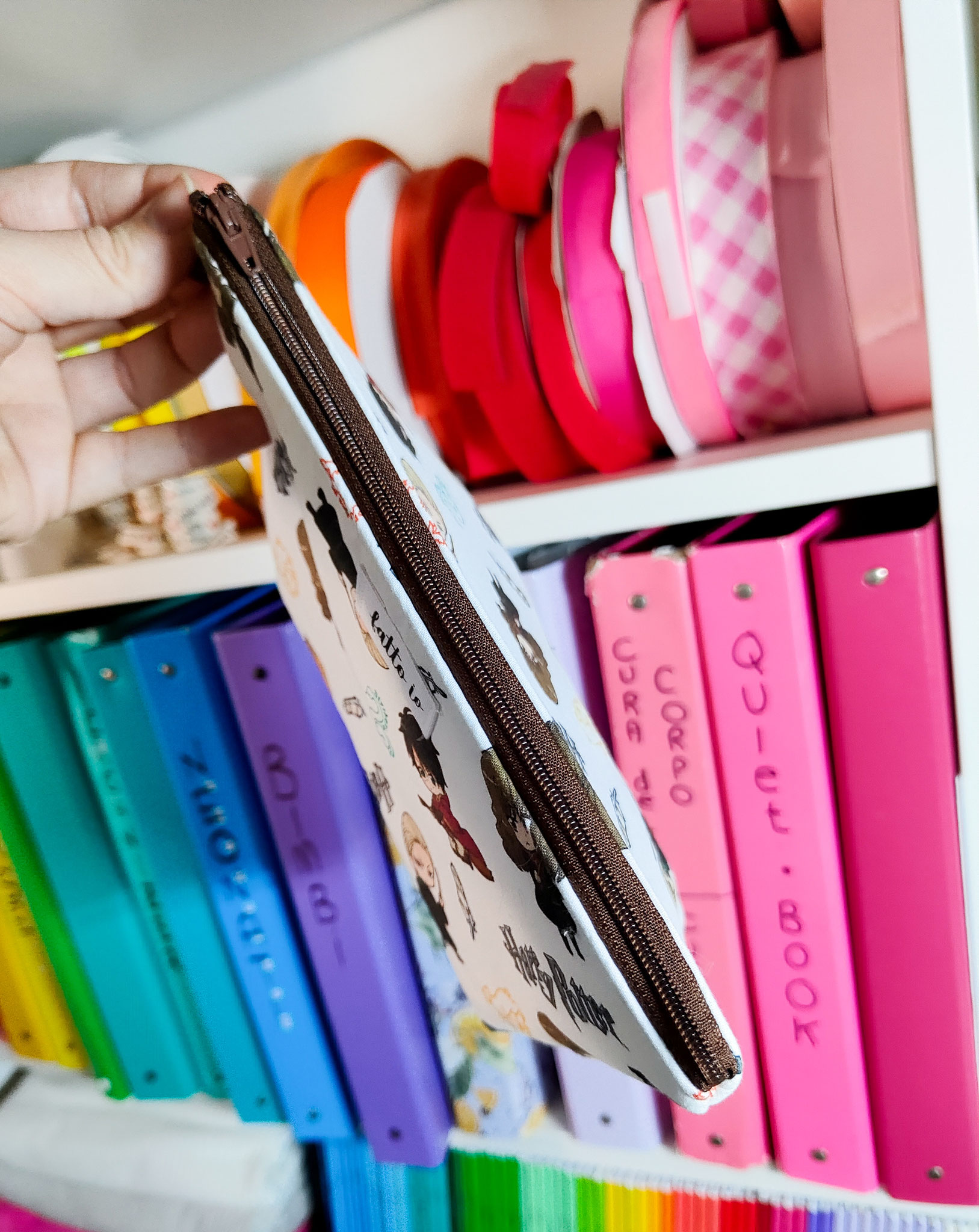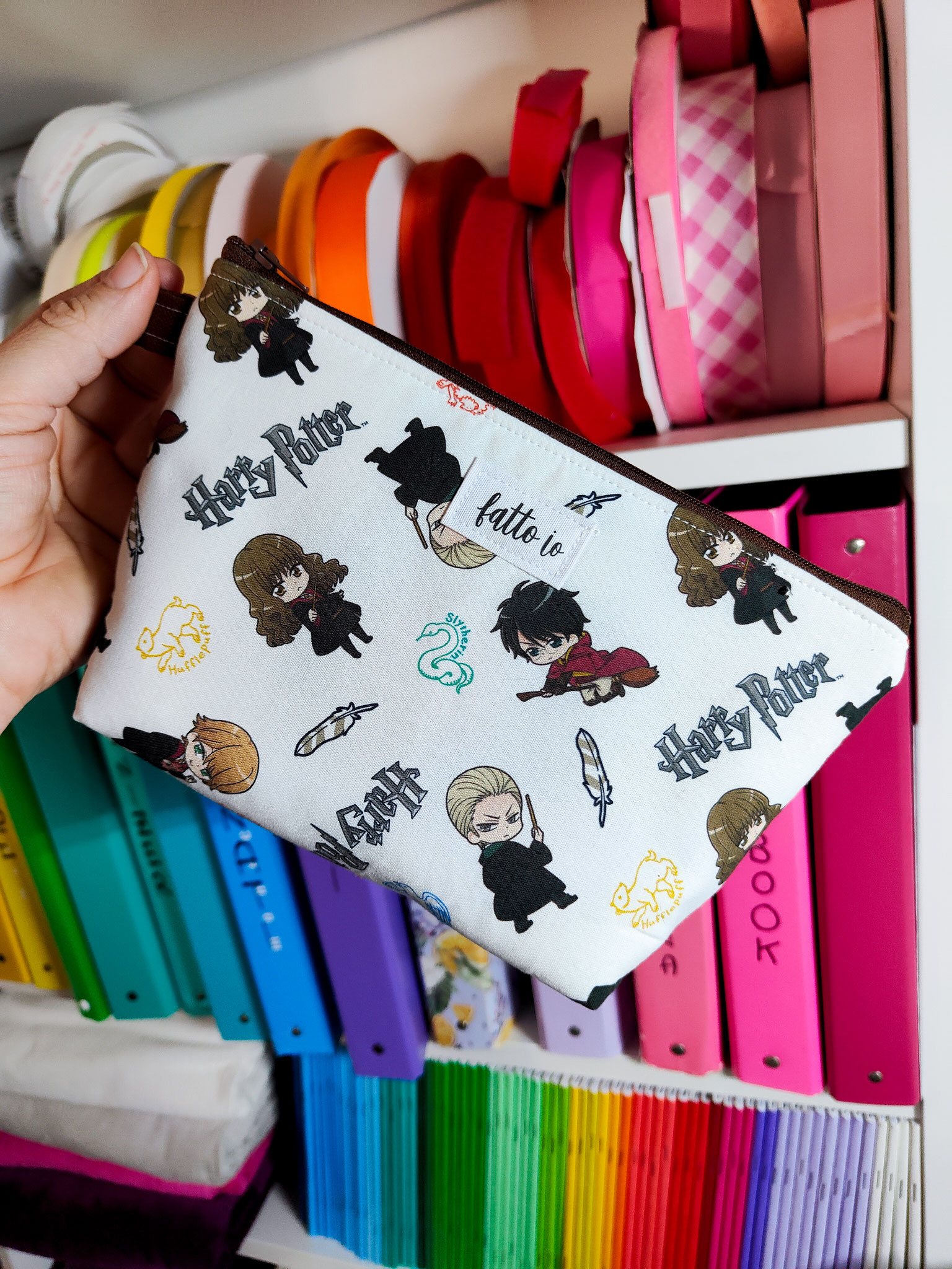 Capientissima Trousse con cerniera (colore a sorpresa) e gancetto laterale.