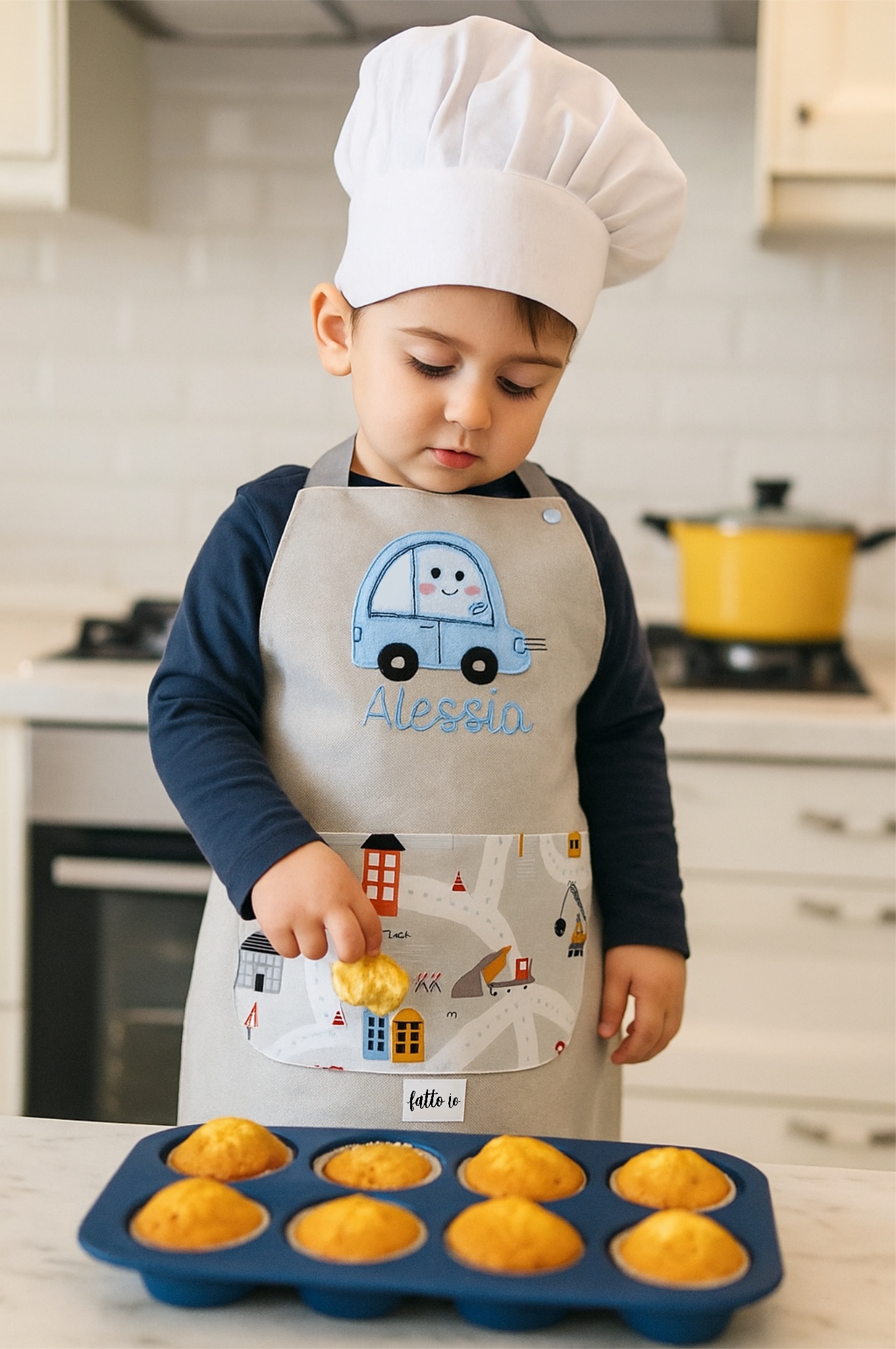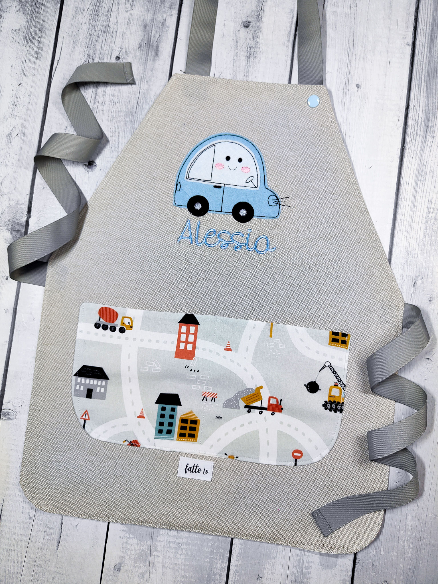 Grembiule per bambini dai 2/5 anni regolabile con tasca.