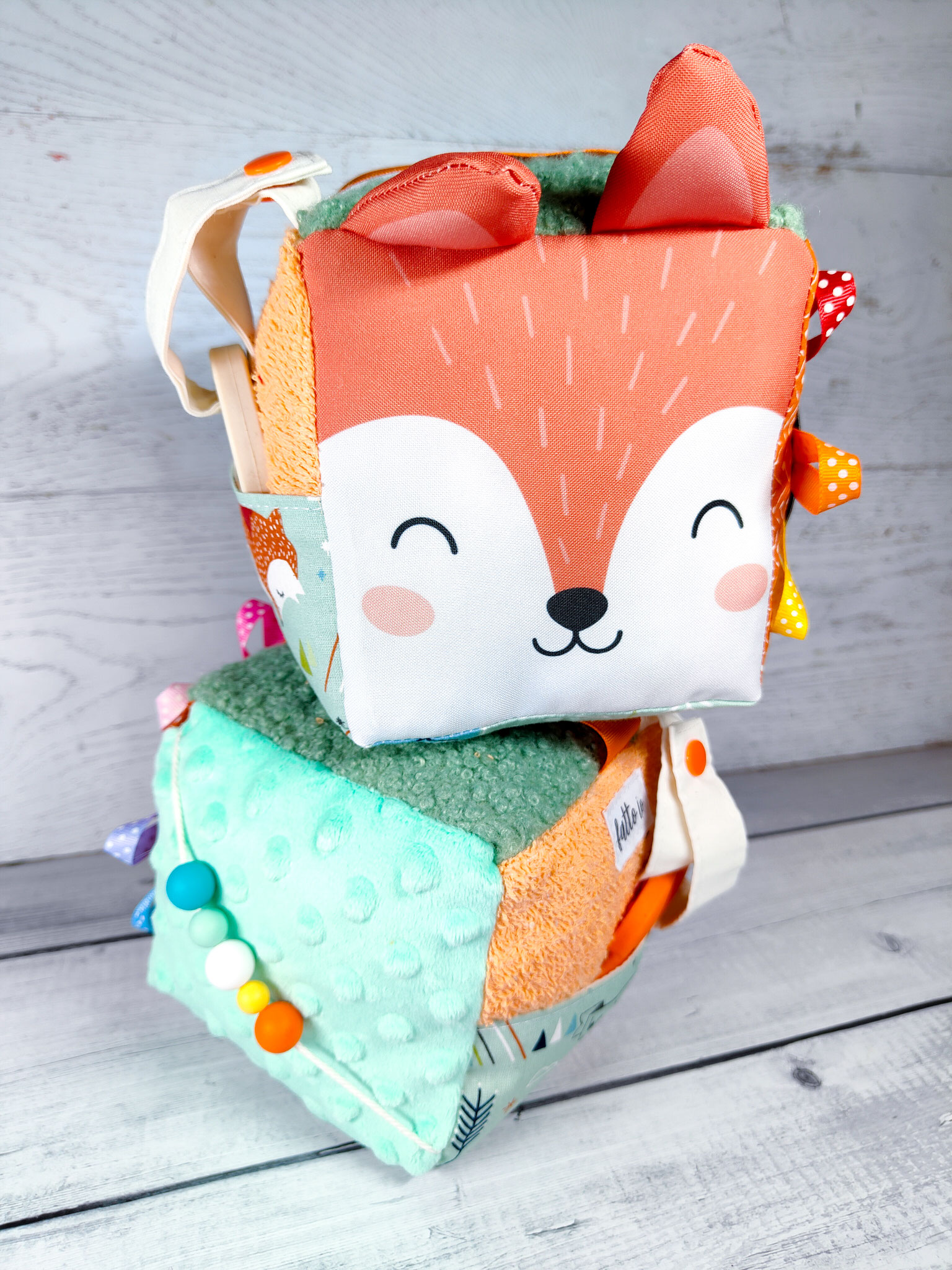 Ogni dettaglio del cubo invita il tuo piccolo a scoprire nuovi tessuti, suoni e forme… perché imparare può (e deve!) essere un gioco sensoriale