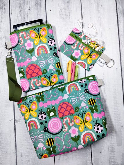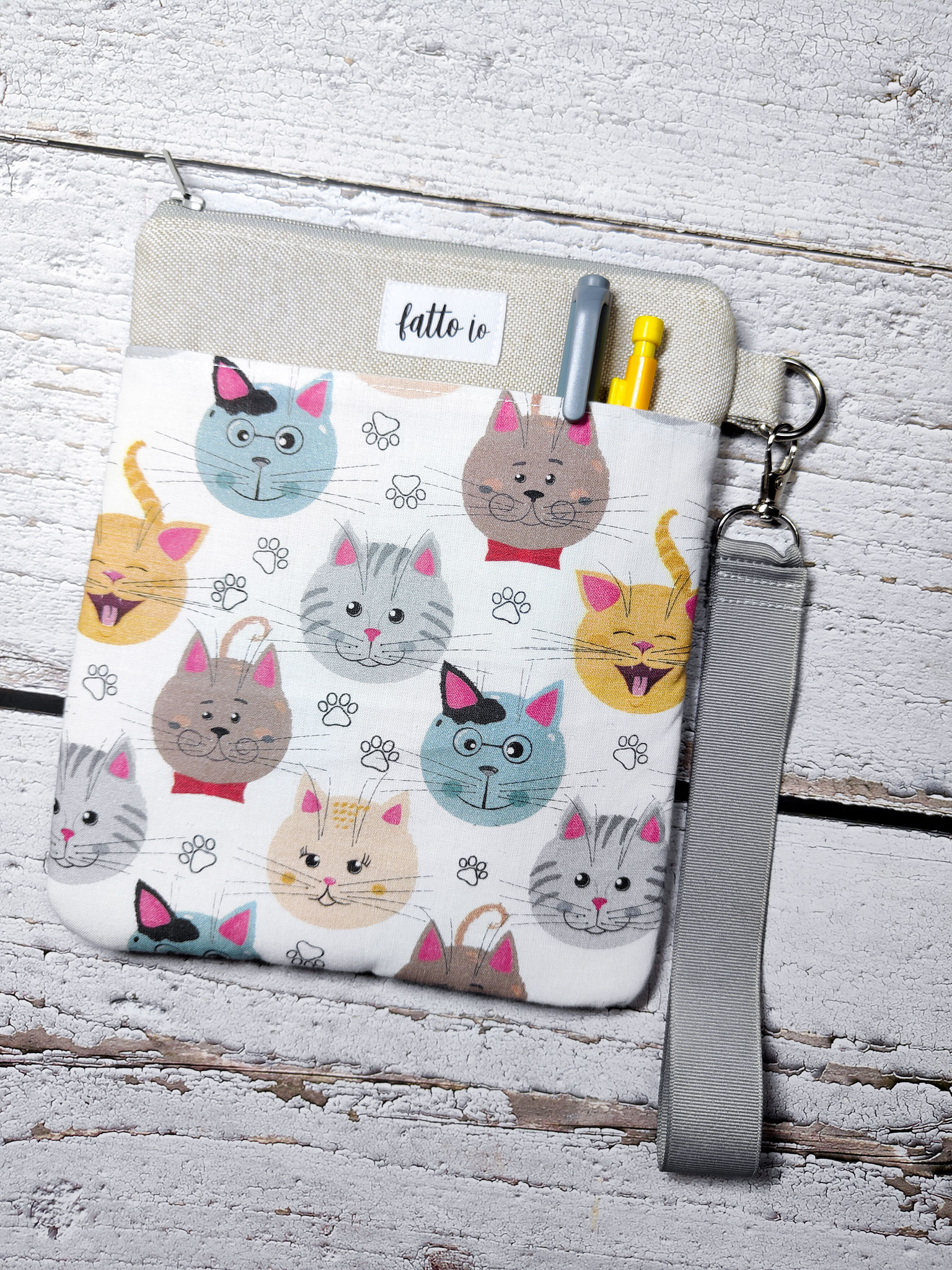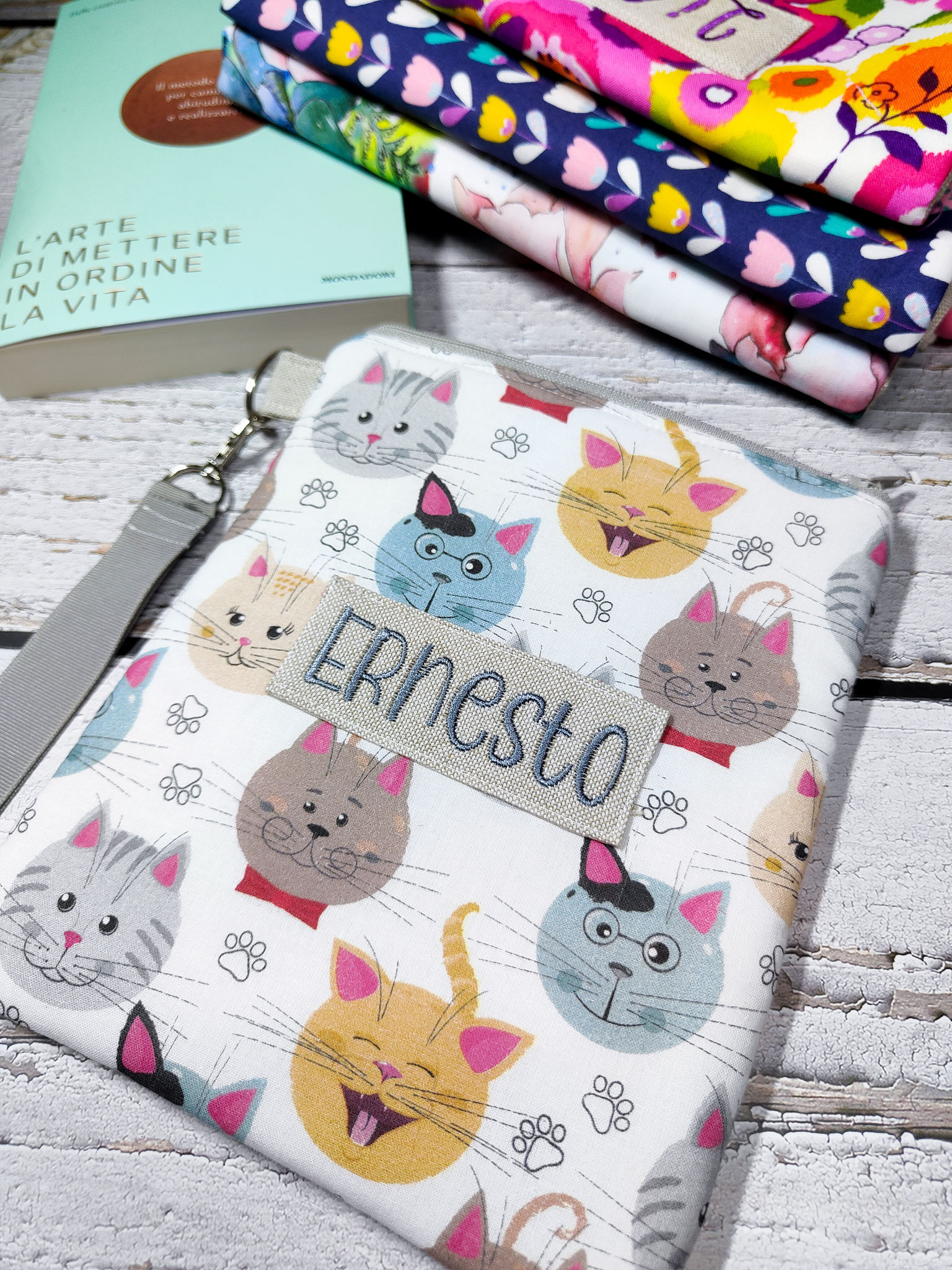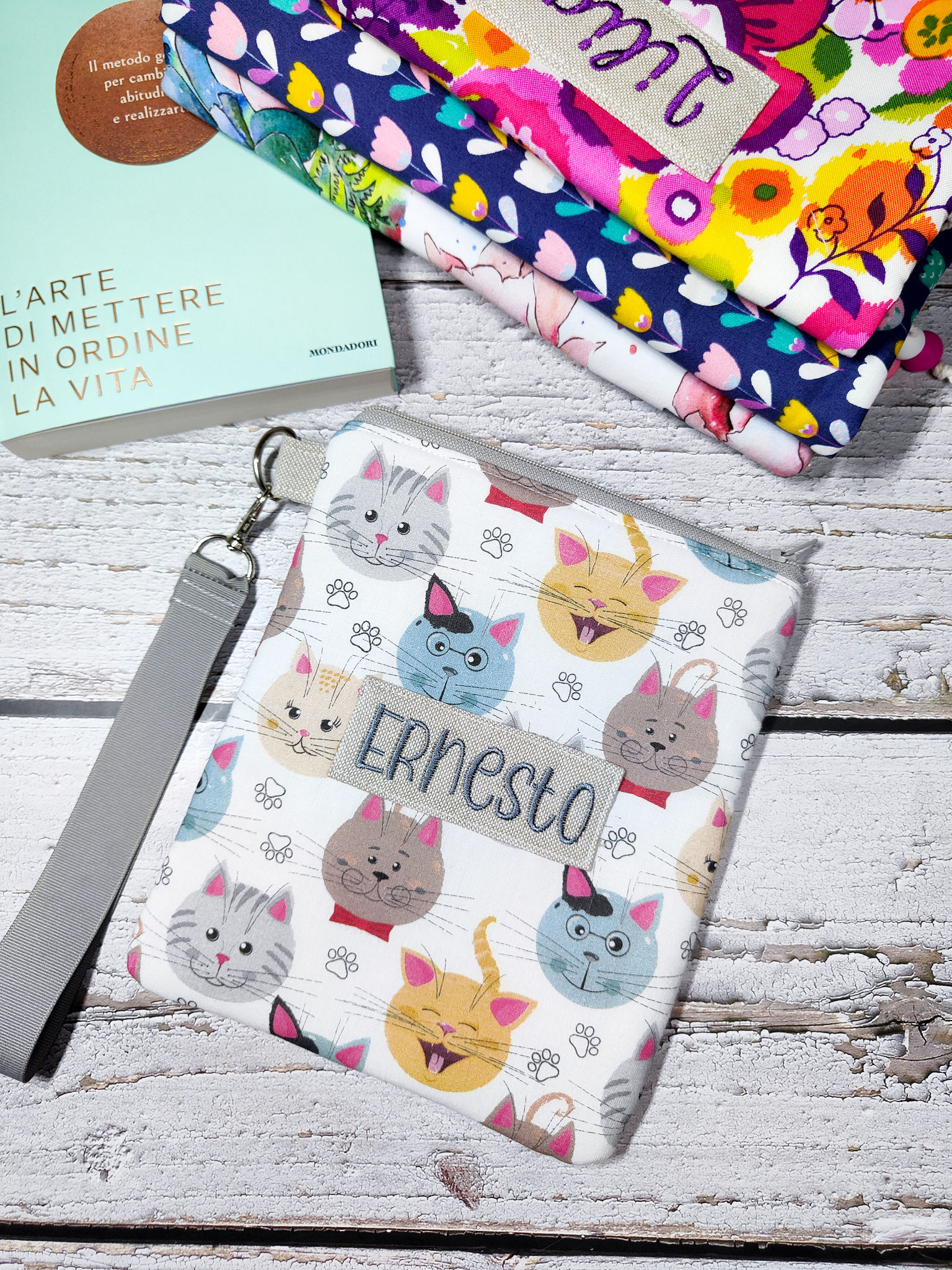 Fronte in tessuto Fantasia (a vs. scelta) e retro con tasca per penne o altri accessori utili come caricatore o cuffiette.