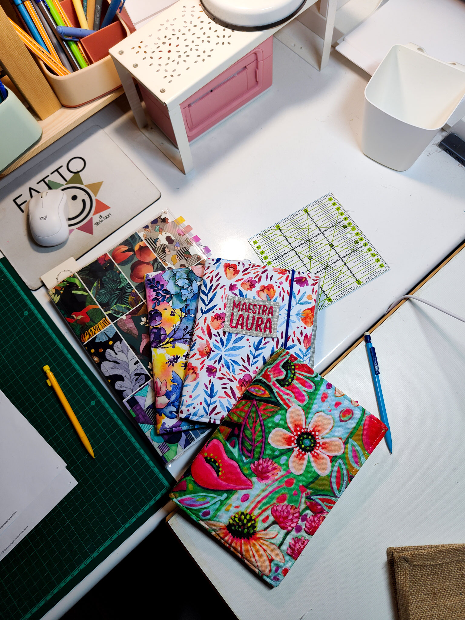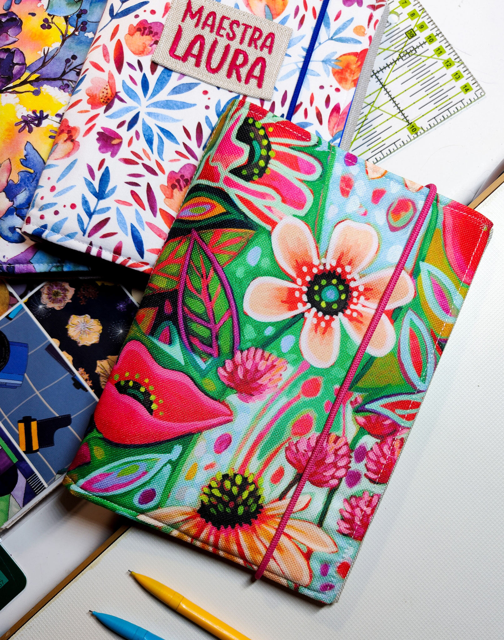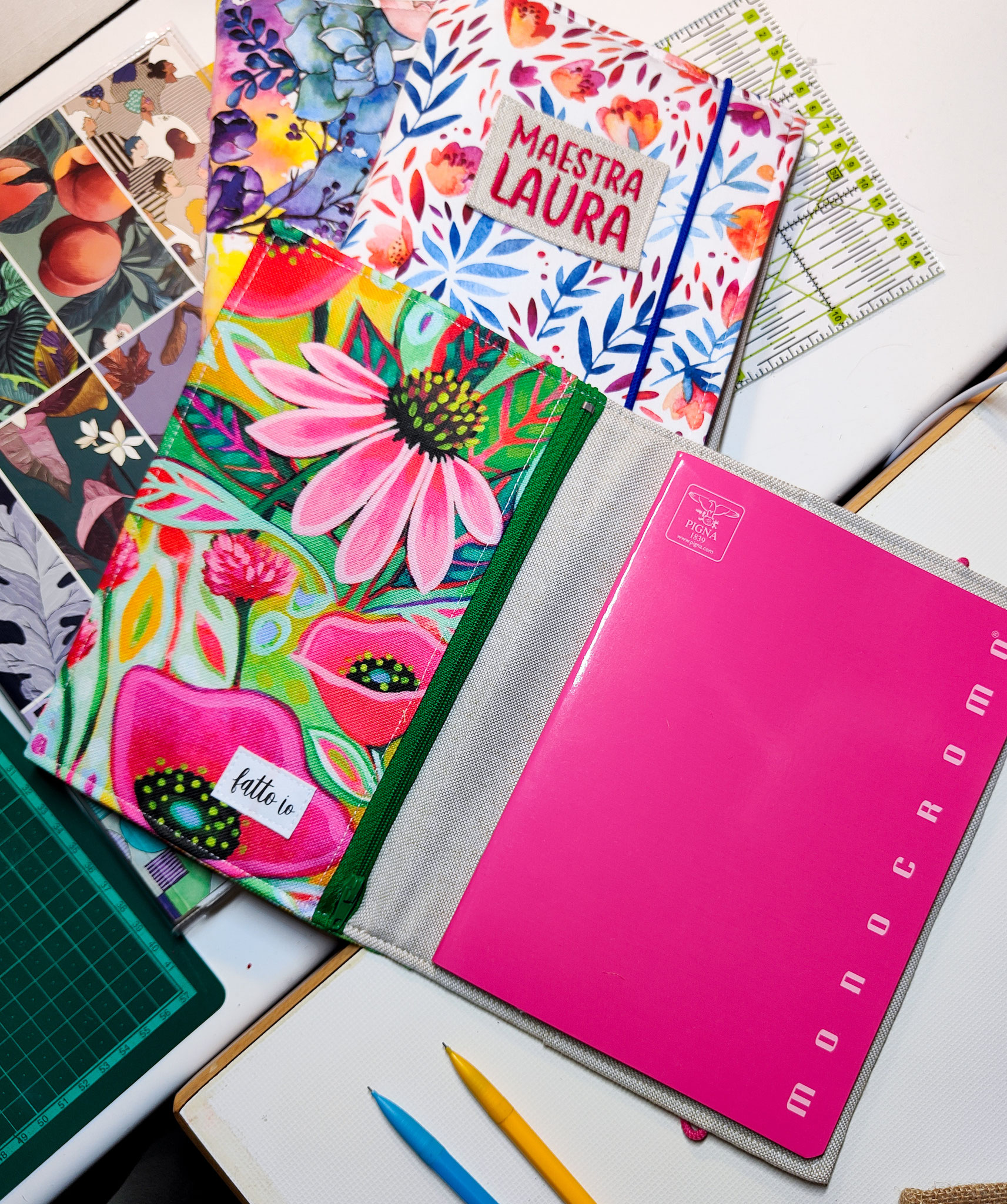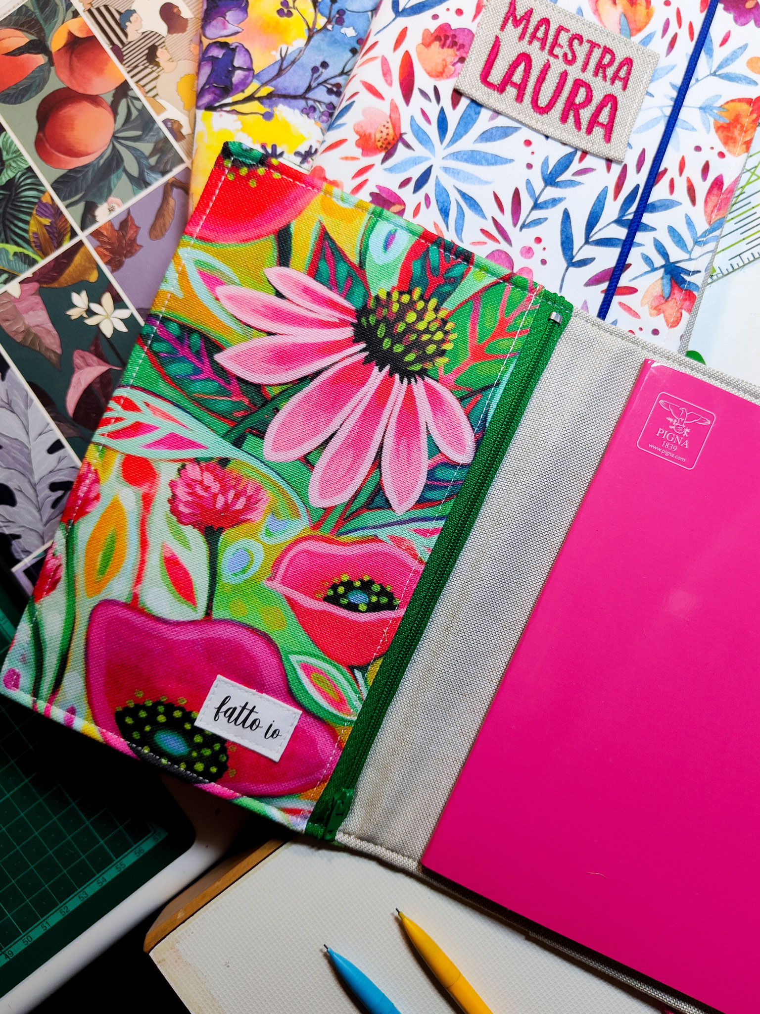 Fantasia Floreale con Quaderno A5 Fuxia ed elastico abbinato